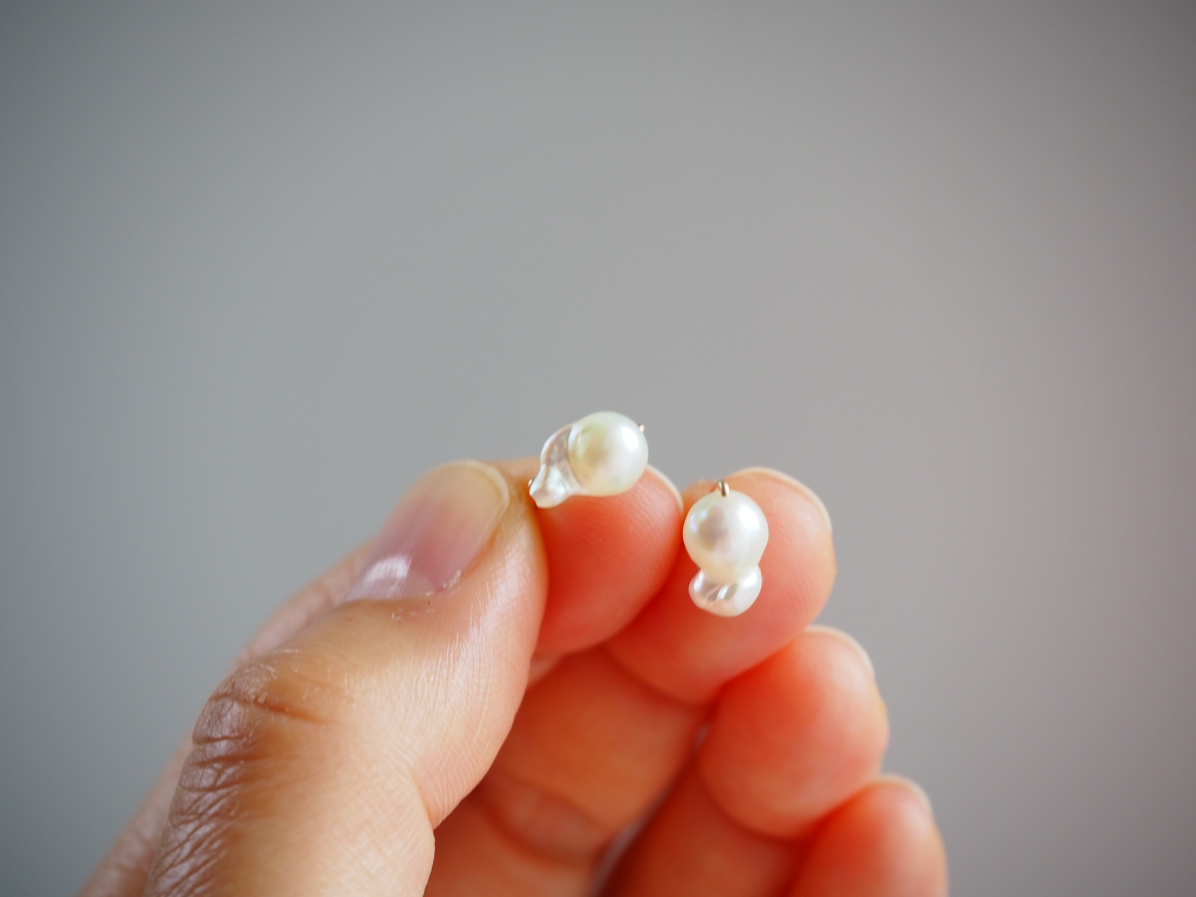 ツノが生えたような個性的な形が愛らしく、この世に二つと同じ形は存在しない魅力的なパールを楽しんでもらえるピアスです。